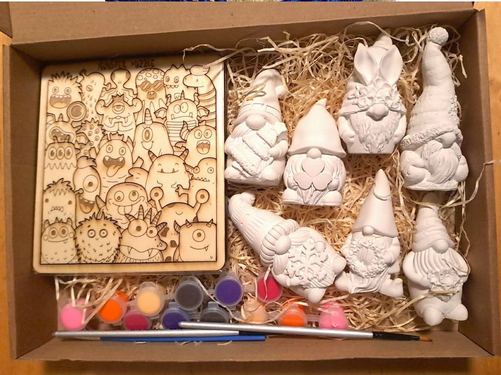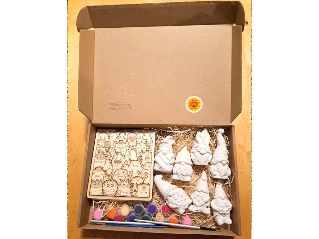 Sada obsahuje 7 trpaslíků z umělecko-keramické hmoty, které si děti mohou vybarvit a ozdobit podle vlastní představivosti. Vhodné jsou fixy, voskovky, vodové i temperové barvy (pastelky nejsou vhodné). Hotové figurky mohou sloužit nejen ke hře, ale i jako originální dekorace – hodí se do interiéru i do exteriéru.